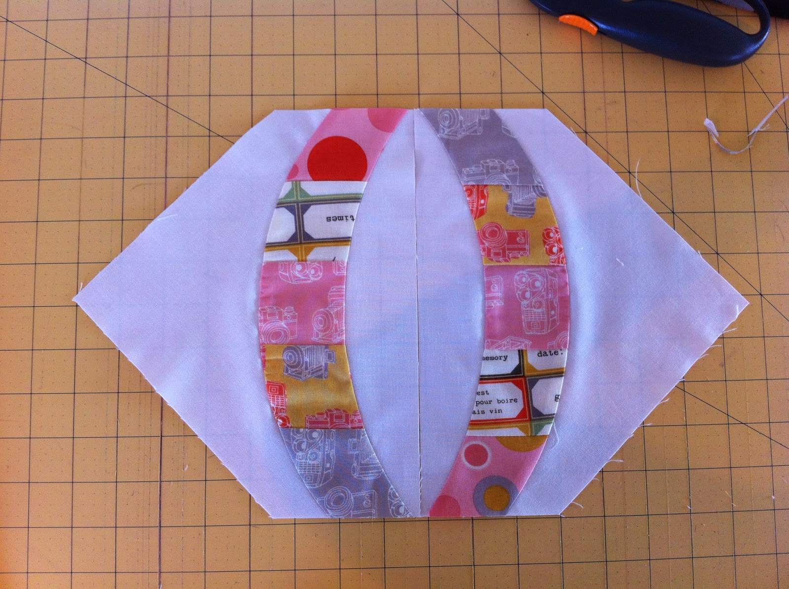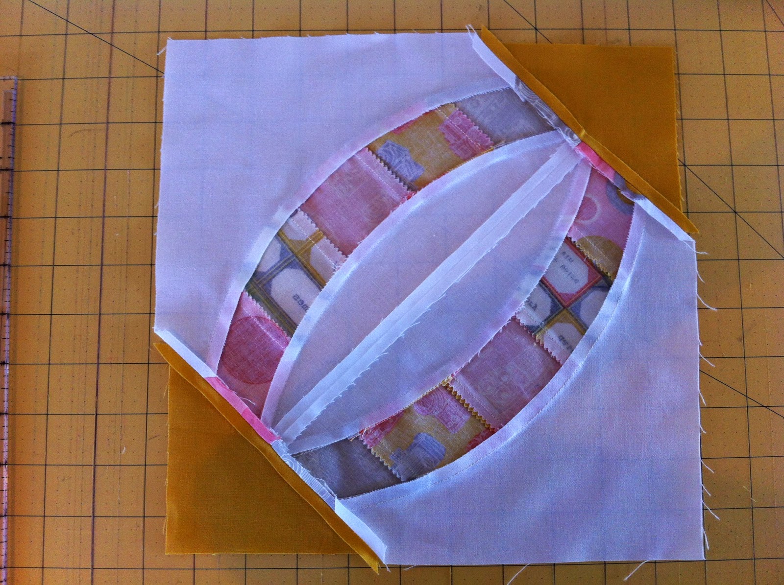 After these blocks are trimmed you should be left with an 1/8" space from edge of block and curved seam.