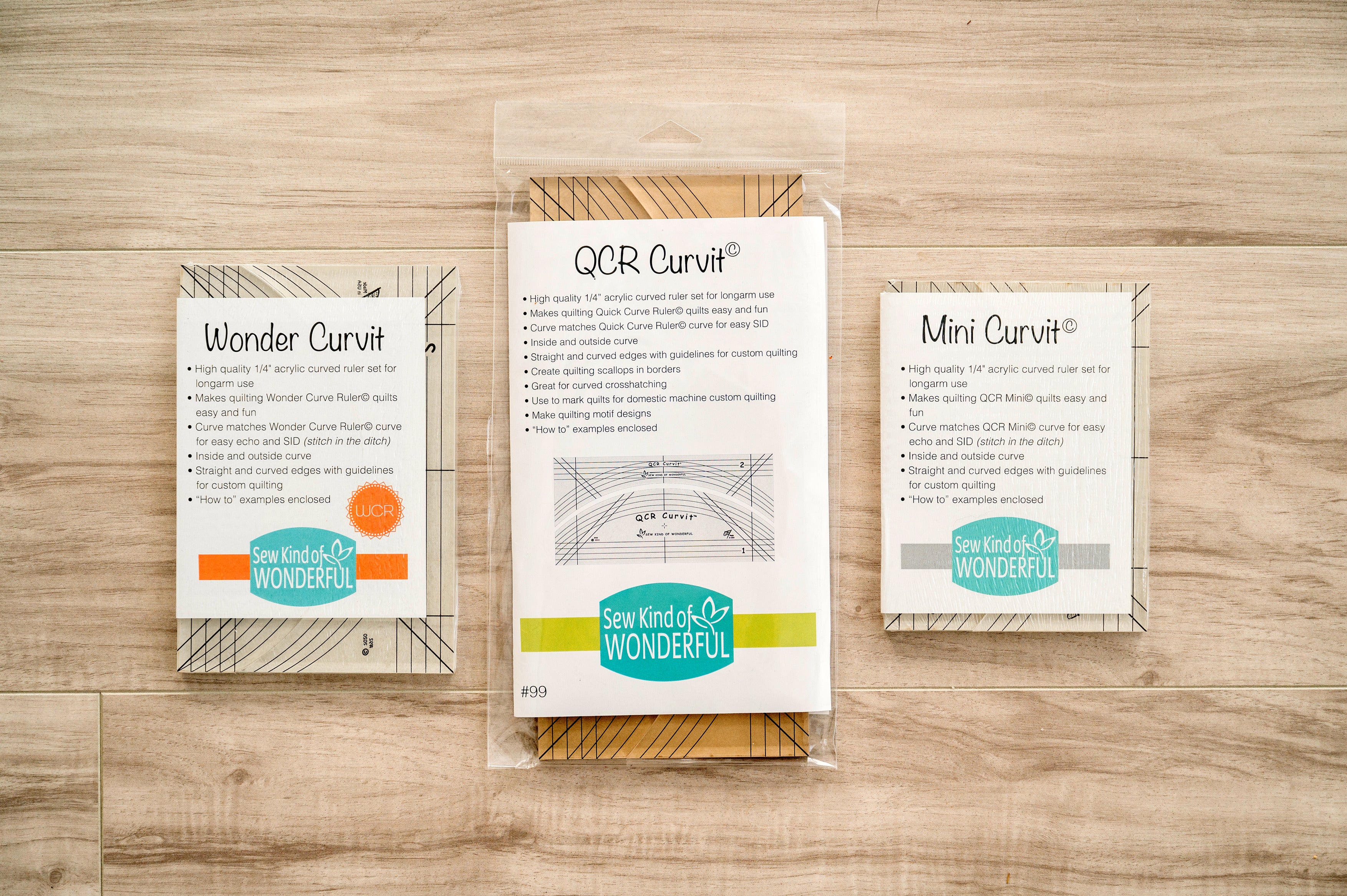 We love combining curved and straight piecing to give variety and interest to a project. We developed the Quick Curve Ruler (QCR) to make cutting curves fast, easy and consistent. Our QCR techniques of Cut-Sew-Square-Up allow for working with the bias, and the square-up step ensures blocks are consistent for piecing the final product.