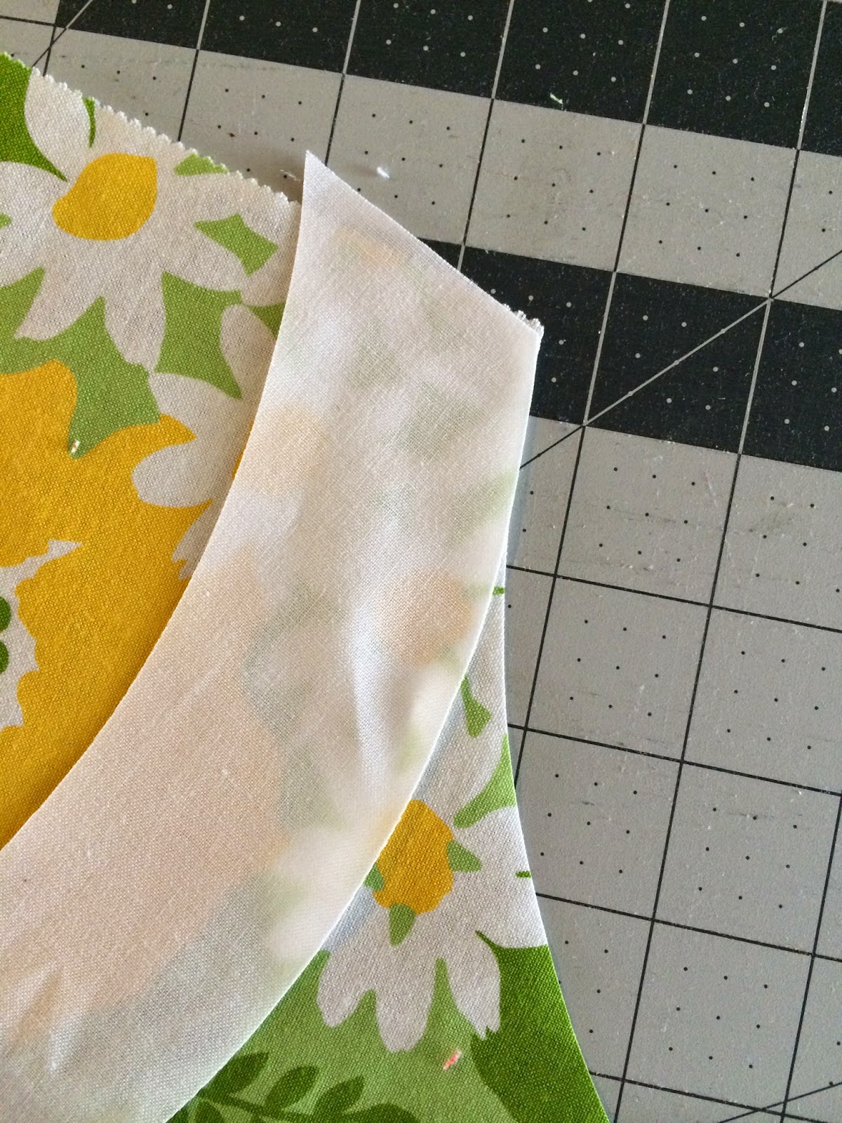 Sew the skinny white curve to each side of the center curve piece. Match up ends before sewing pieces together.