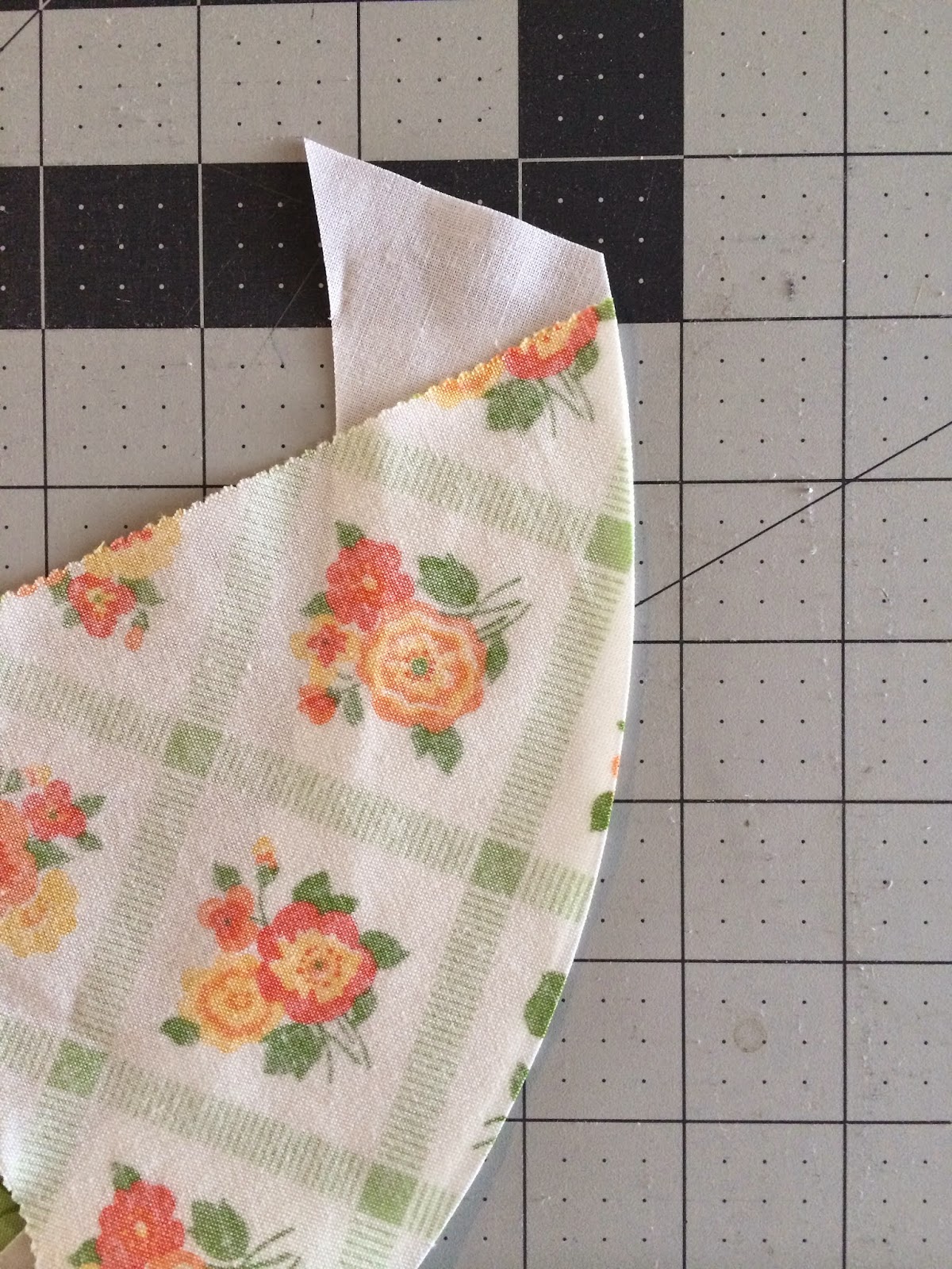 Next, sew on the outer curve triangles to each side of the skinny curves. Place the curved triangle a 1/4" down before sewing together.