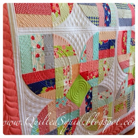 Today we're thrilled to feature this gorgeous quilt! Darby from the Quilted Squid Blog is the creator of this beautiful "Spring Fling" QCR quilt.