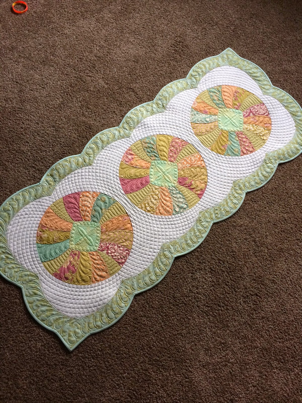 I love these colors next to the cherry wood. I used the Quick Curve Ruler for the scalloped border. I'm very happy