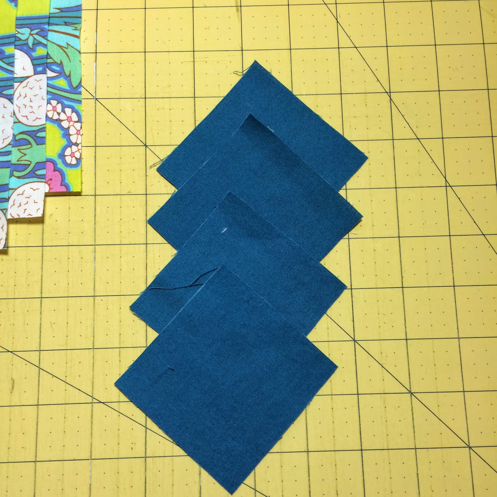 (4) 3" x 3" squares for flower centers (teal) (draw a diagonal line on ws of each)