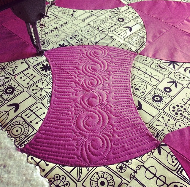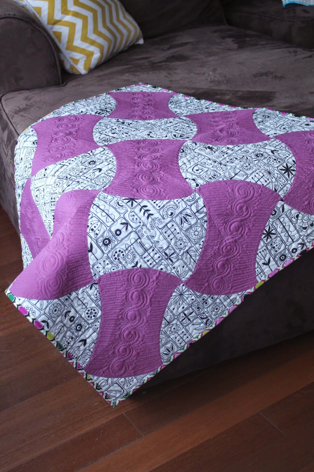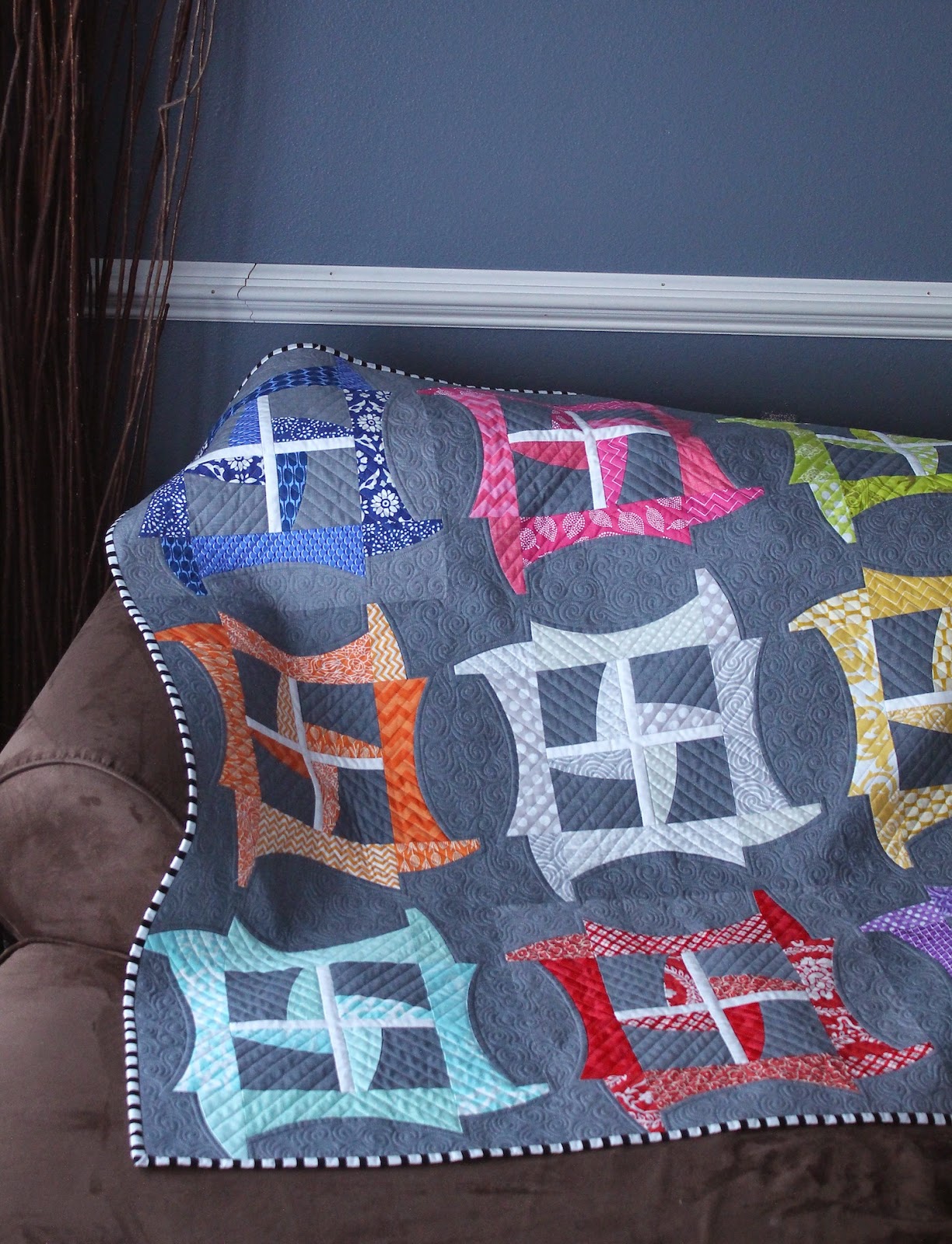 Super easy and fun to put together! I had a lot of fun quilt it also. I thought the straight lines looked great in the blocks and the fun swirl gave movement around the dancing churndash!