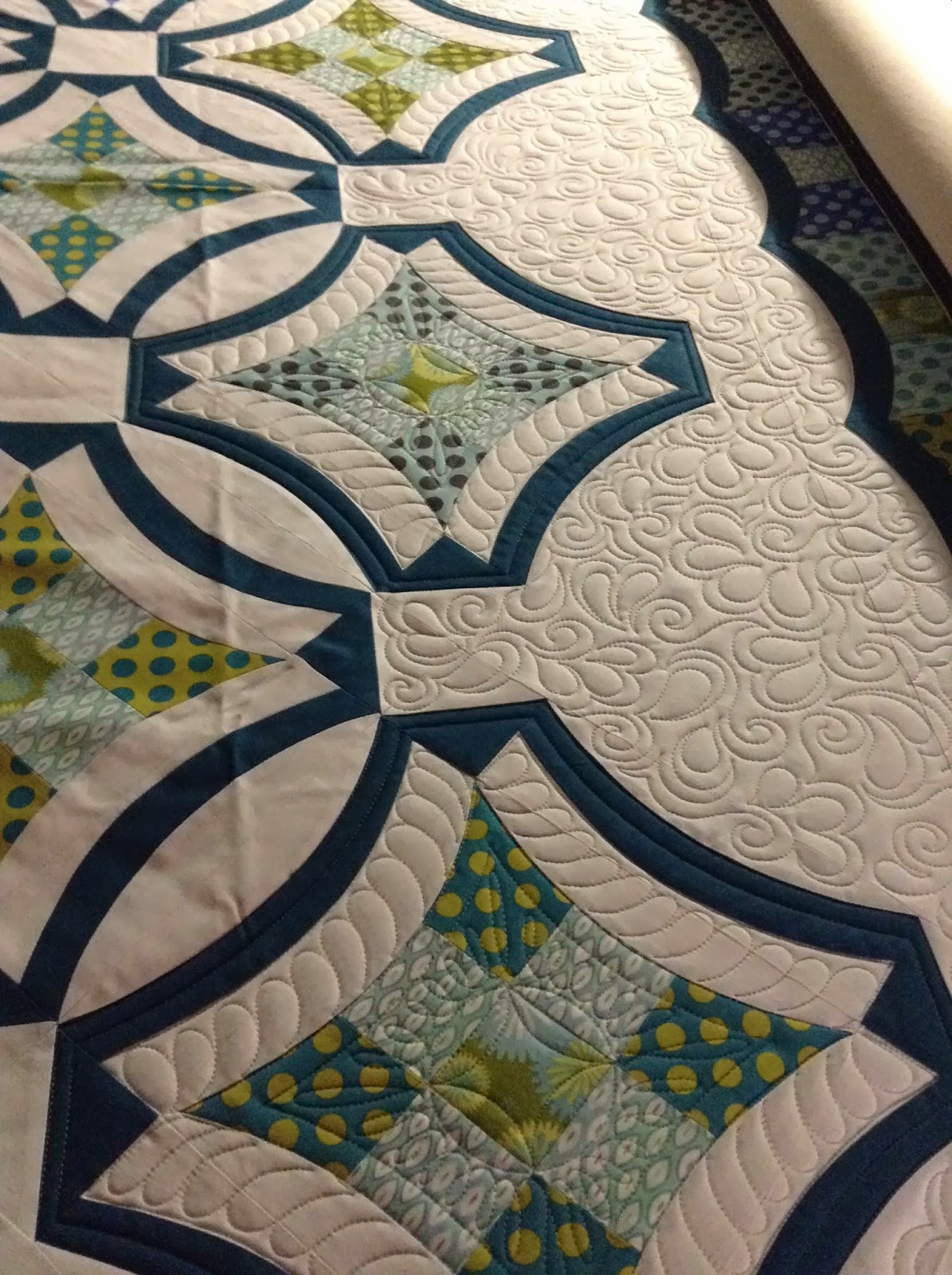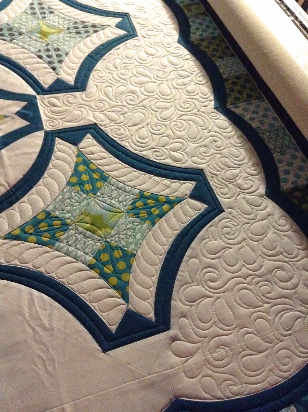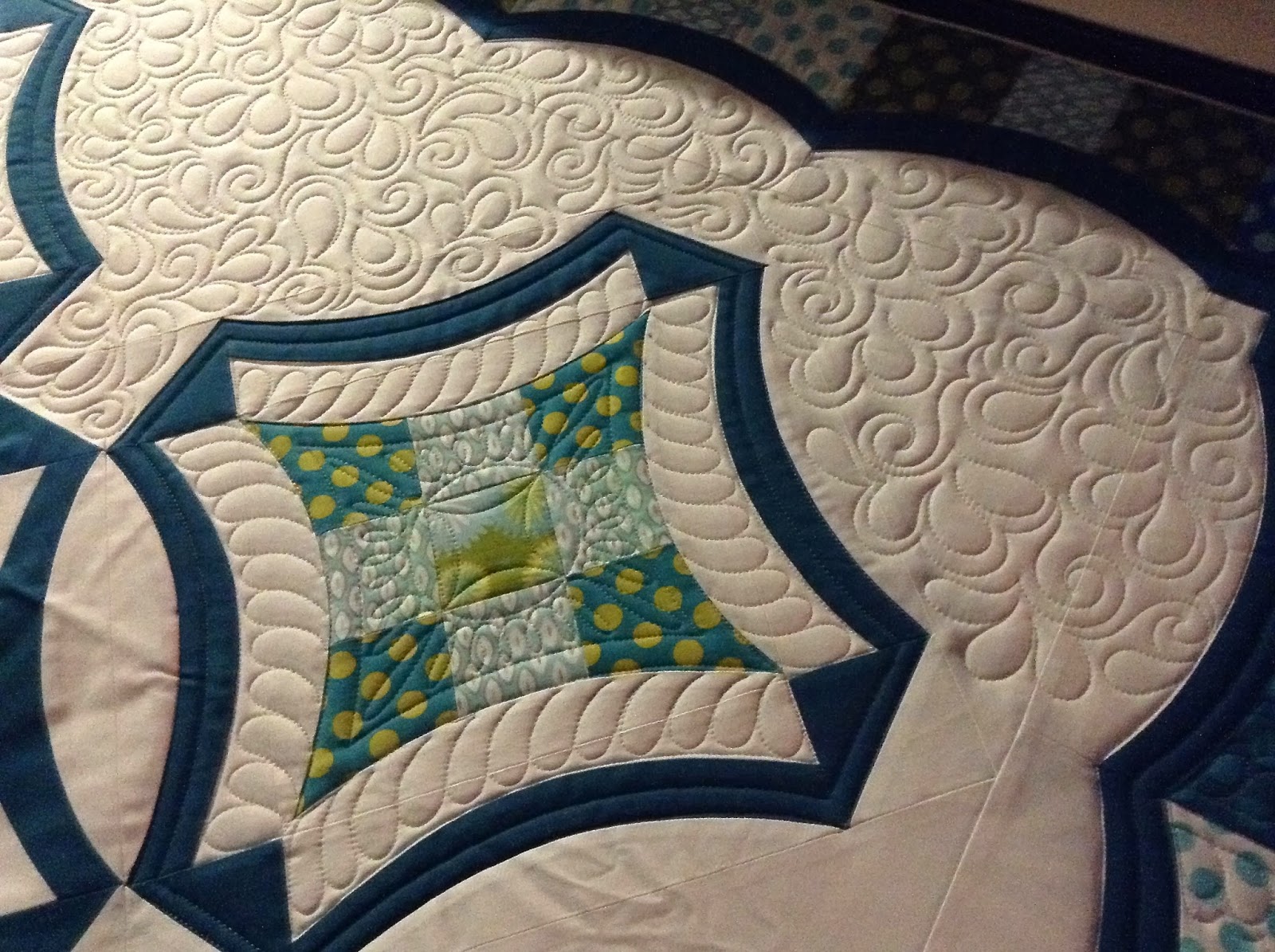 I will admit, I had a really difficult time yesterday deciding how to quilt this up. I found out she loved feathers and so that helped...but I was really stumped otherwise. I think because I love this quilt so much it was a bit intimidating as to what to quilt on it and I didn't want to do something I wouldn't be happy with.