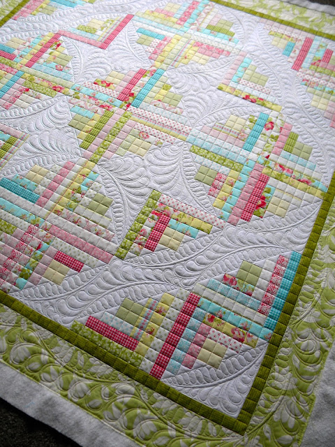 I knew I wanted to do some fun quilting in the white parts of the quilt and for that to be the focus point.....so doing a grid on the other areas was perfect and easy.
