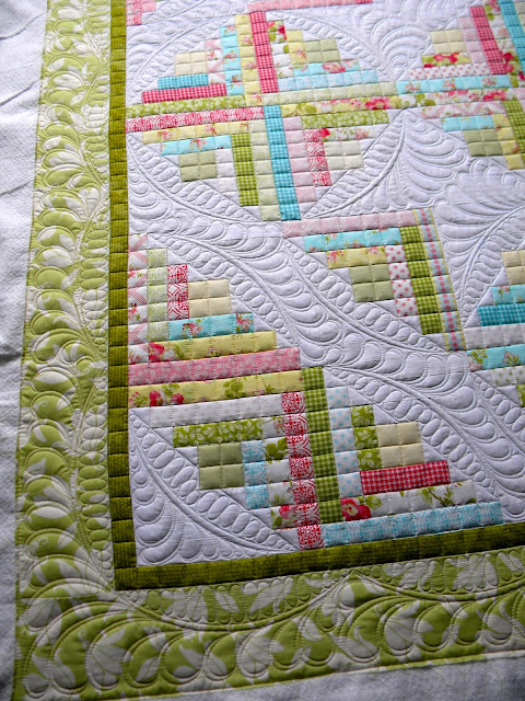 I just finished Deb's beautiful quilt and love how it turned out. It's always exciting for me to pull it off the frame and truly get the whole quilting effect.
