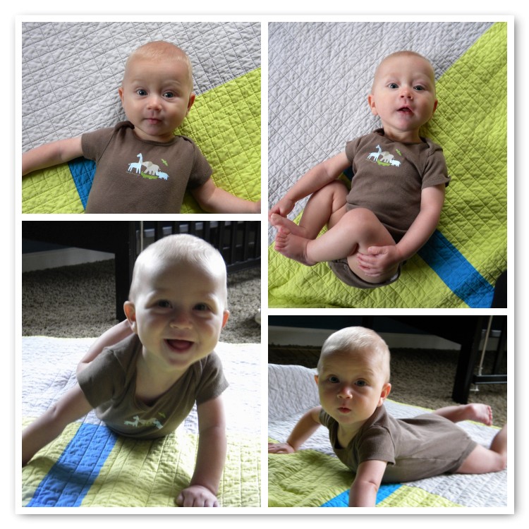 He's now starting to hold toys, suck on his fingers and he loves it when anyone talks to him. He's a very social baby and will let anyone hold him. We couldn't imagine life without him!