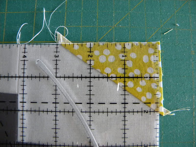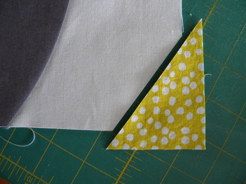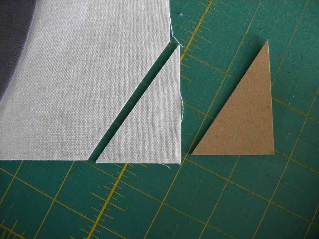 Trace along edge and using a rotary cutter, place ruler on mark and cut off corner piece.
