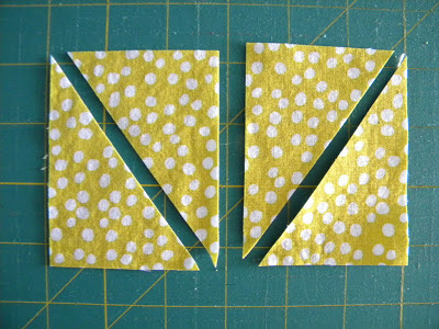 Cut rectangles in half. Make sure to cut opposite of each other.