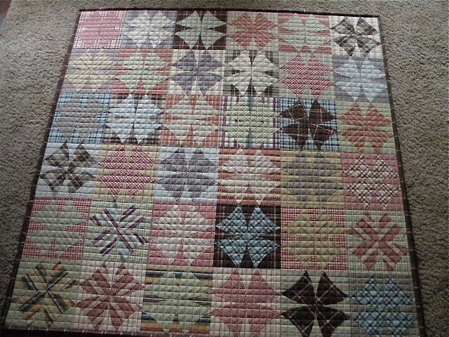 I buckled and used 2 layers of warm and white...but of course love it and I finished putting the binding on at the Family party last night. I happily gave it to my Mother-n-law and am so glad it's finished and will be for show in her beautiful house!