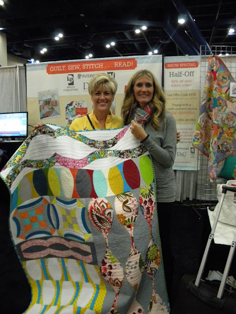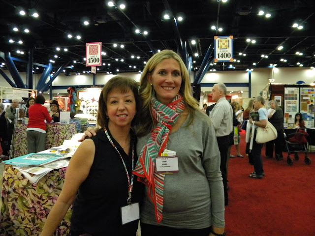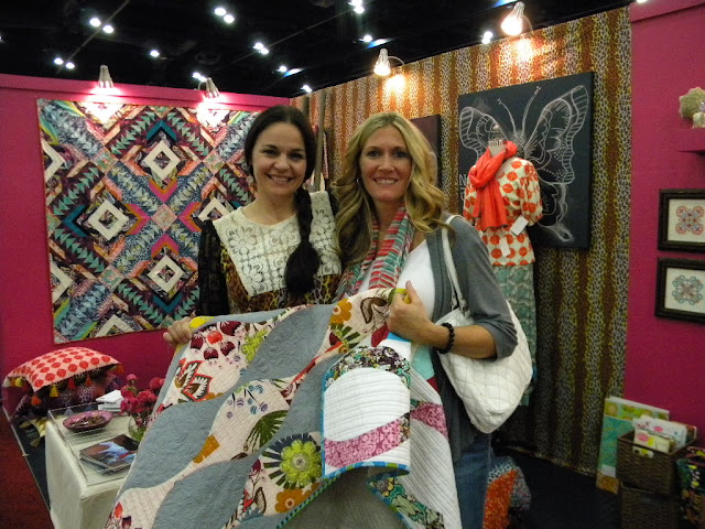 Here is Anna Maria Horner and I standing in her booth. I of course had to show part of my sampler quilt to her, using fabric she designed. This was my 2nd time meeting her and she is so sweet. I'm a big fan of her fabric and the inspiration it has given me for some of my designs! Another great moment at Market!