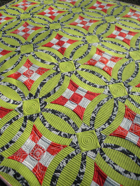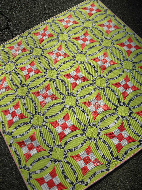 I've personally never seen a quilt done up in these colors. Tangerine orange, cactus green and black and white. I really wanted to capture a contemporary look using these colors for a quilt and really love how it turned out!
