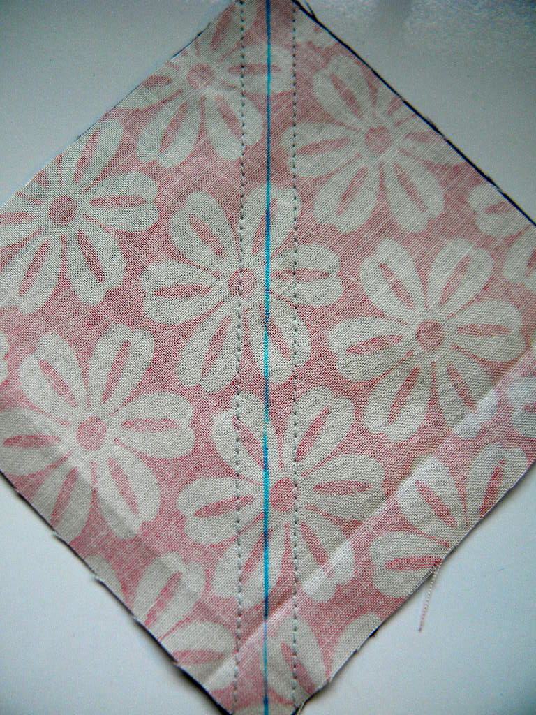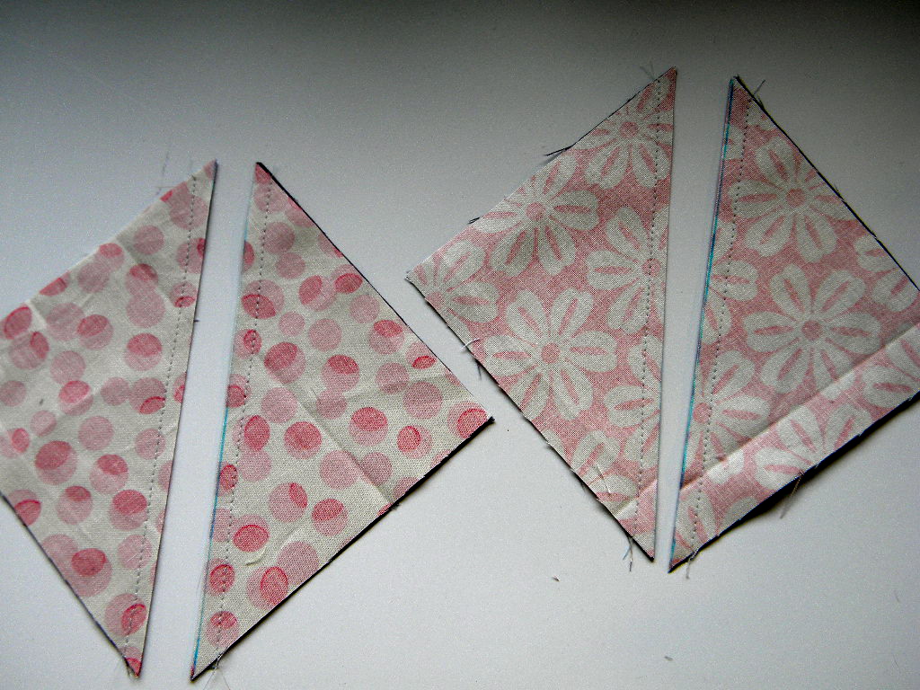 Cut in half on the marked line and press towards focus fabric. You will end up with (4) 1/2 square triangles.