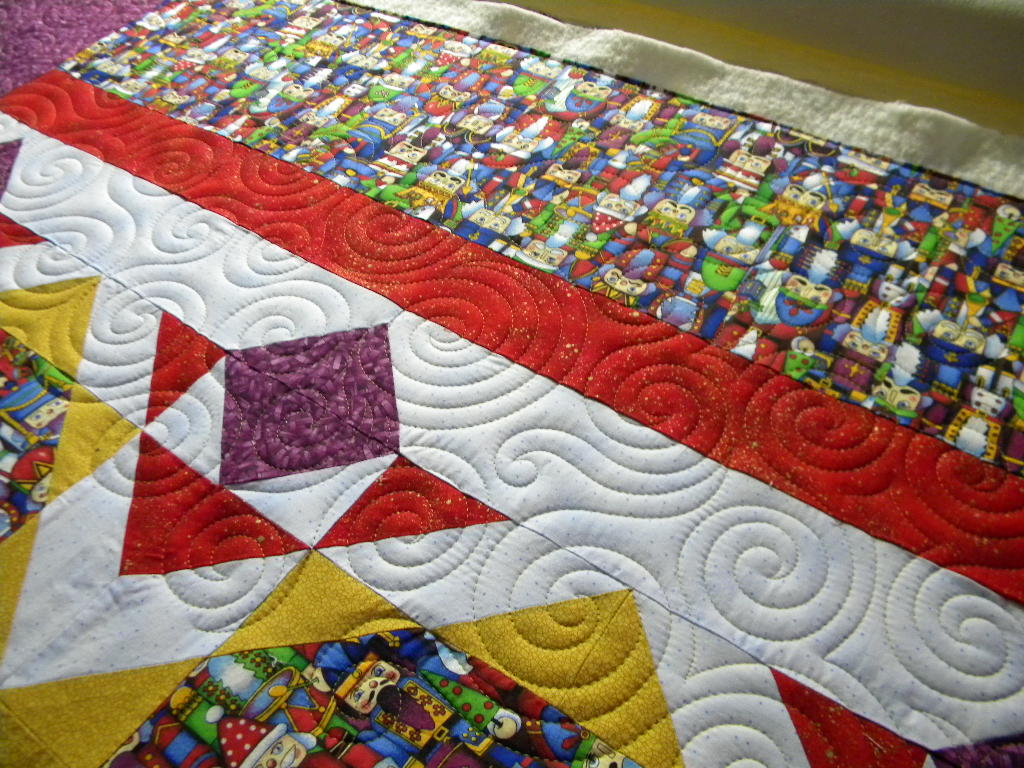 I'm doing a freehand overall swirl and think it's fitting for this Christmas quilt.