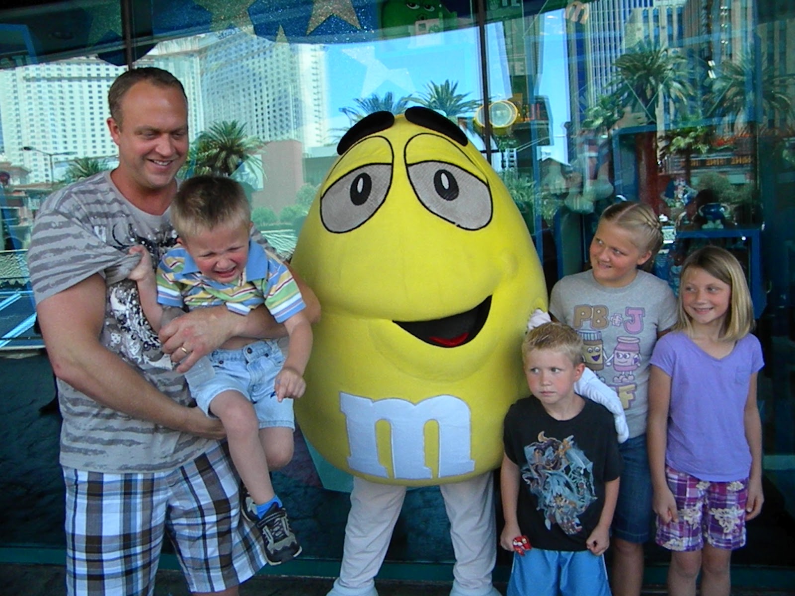 I wanted to find a picture of Jared playing with the kids, because he really is a big kid himself. He's the type of dad and uncle you will always find with the kids. This picture is missing my oldest boy and Toby was terrified of the m&m man. I love Jared and the husband and dad that he is to our kids!