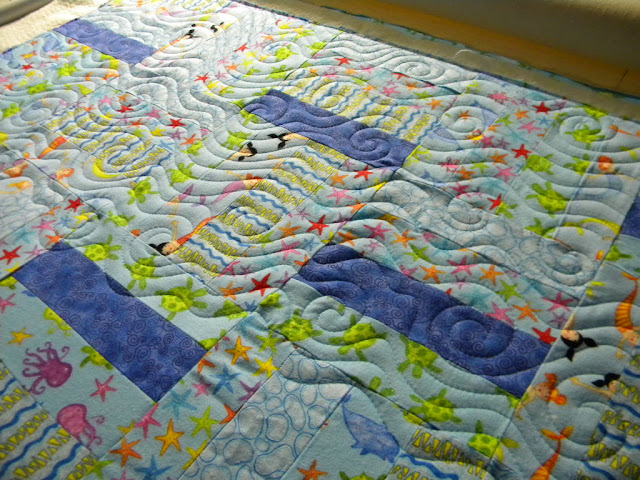 It's day 14 of my 31 Day Challenge. I started my quilting day quilting up this fun Ocean/Mermaid flannel quilt: