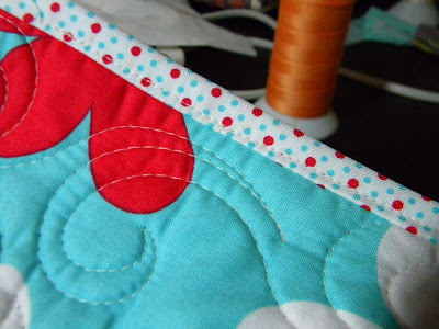 I really like this look. Heck...there are stitches all over the quilt, having some on the binding sort of ties it all in. It's really fast and you rarely have to worry about not catching the back.