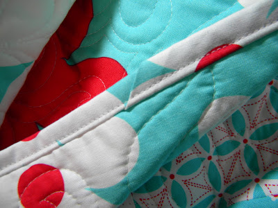 I did some fun water/swirly quilting on it....I thought it was very fitting for the quilt. I then added the binding before taking it off the machine and it felt sooo good taking the last quilt of Karen's quilts off!