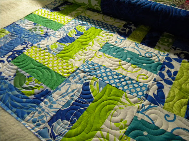 I did a freehand swirl on this fun quilt and of course added the binding before taking it off the machine.