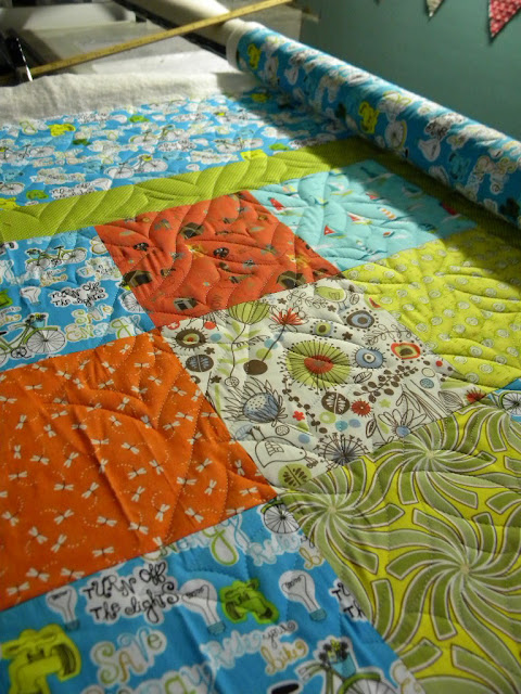 This was also fun with a lot of fun fabrics. I did the pantograph "spiral square" on it. One of my favorite panto's!