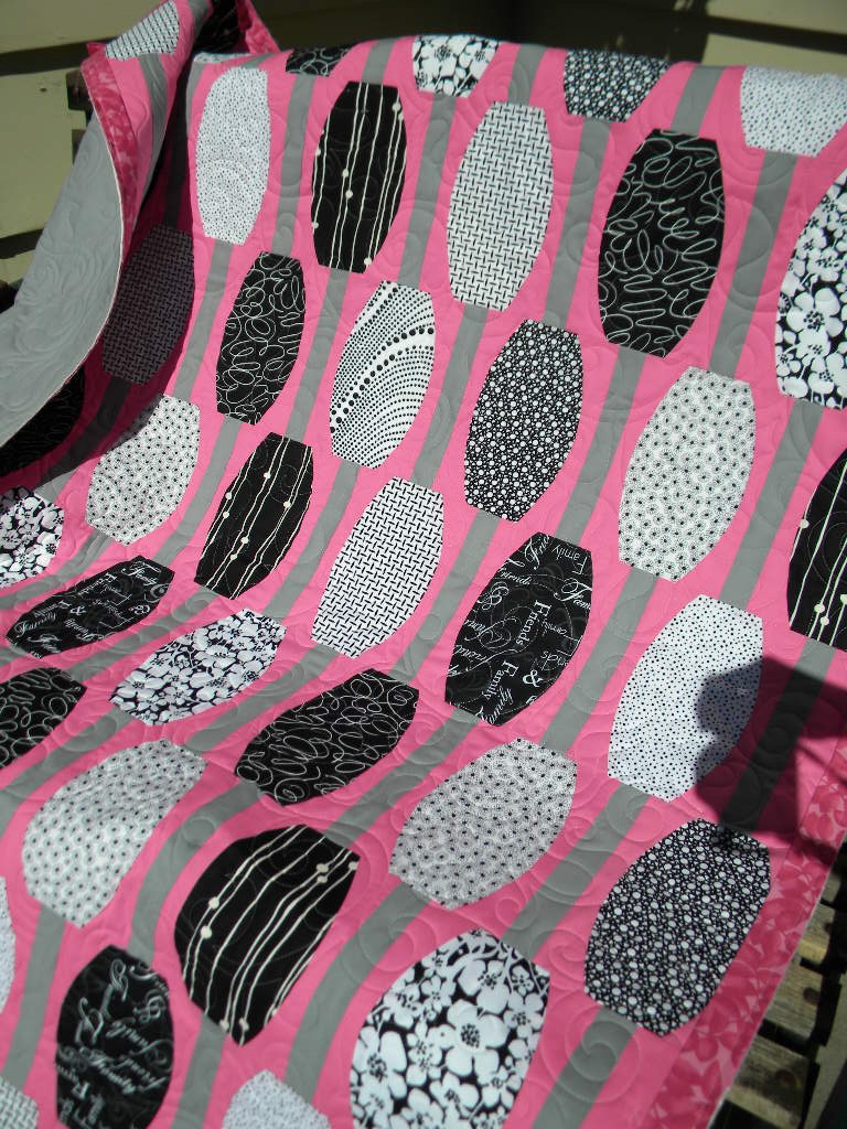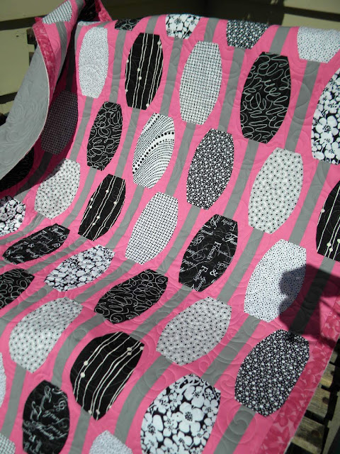 I love the pink with the black and white prints. I just finished quilting it for her and used the pantograph "Gothic Vine". I thought it worked well for the quilt!