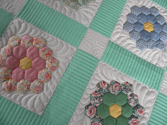 It was a joy quilting this up for Annette and I hope she is happy with it! It's not hand quilted but at least it is quilted and I hope I gave it that traditional feel and look it deserves!