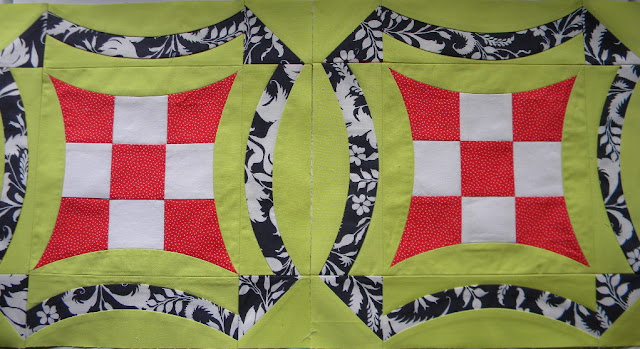 ...well since I all ready had my black and whites cut to the measurements of the skinny curve in the Urban Nine Patch and half of my greens cut, I had the idea to make yet a THIRD Urban Nine Patch quilt!