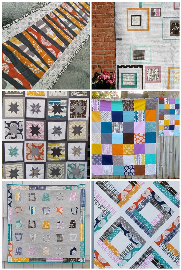 1. Saffron Ash, Patchwork Tablerunner, 2. lotta charm quilt, 3. Manzanita Stars, 4. Big Mama and her Baby Echo, 5. Glass Half Full Quilt Front, 6. Garden Trellis Detail