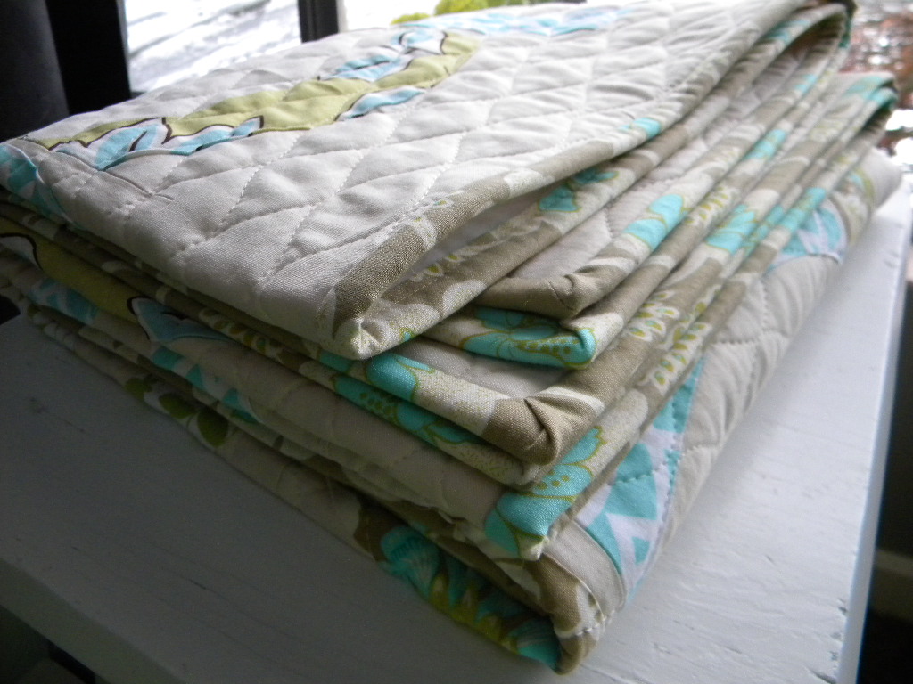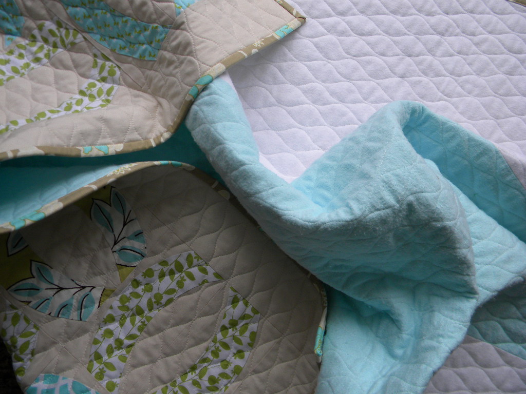 I used 2 flannels pieced together for the back...I love how soft it makes it for a baby quilt and I used one layer of warm and white for the batting.