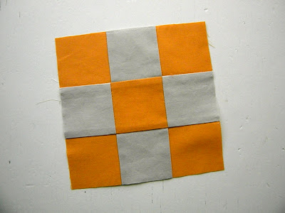 ..then I started cutting into the fabric... made a nine patch: a square for the center and corners and rectangles for the side centers.