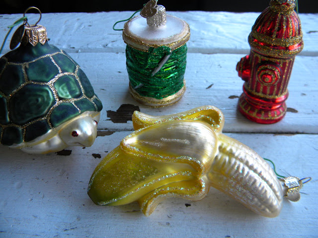This time of year I'm always on the look out for Glass Ornaments. I started collecting glass ornaments a few years back along with my sister's, sister-n-law and mom. We got the idea from my Aunt who has the coolest Christmas tree with hundreds of glass ornaments on it!