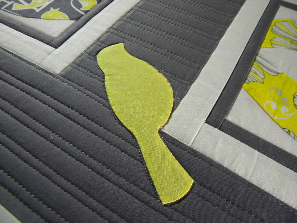 This quilt is the second quilt I did up for my designs....oh let's say MONTHS ago!! The little bird was designed by my 14 yr. old. I do love applique and hope to use it in more of my quilts, but this is the only one so far?