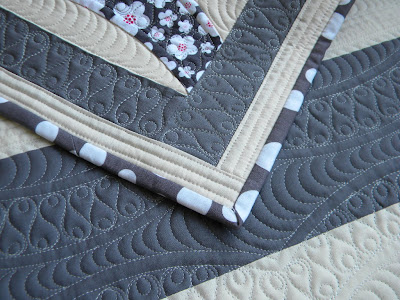 I used double warm and white batting. In all the gray area's and prints I used a variegated gray and white thread and in the tan area's I used a bone colored thread.