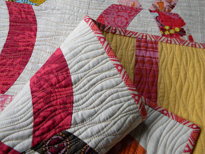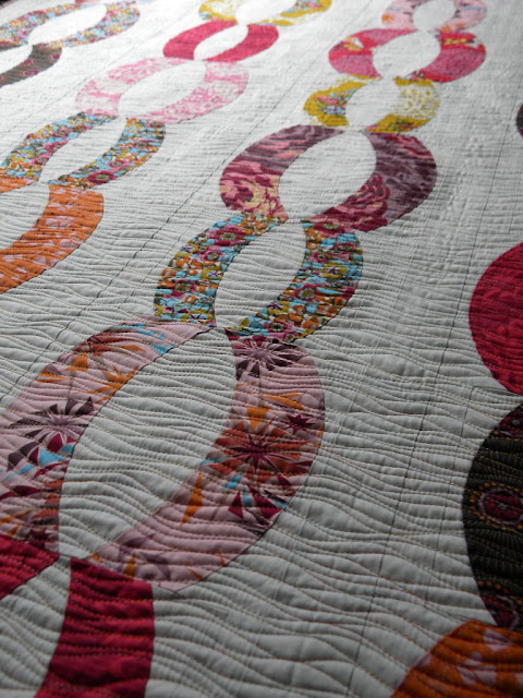 ...okay, so you all were right, thanks so much for the reassurance on this quilt! When I took it off my machine yesterday and brought it up stairs to lay out, my family and I all agreed it looked like a bamboo blind ;o)....very organic. I'm completely amazed at how the quilting really gave this quilt a completely different look of it's own and YES....I love it!