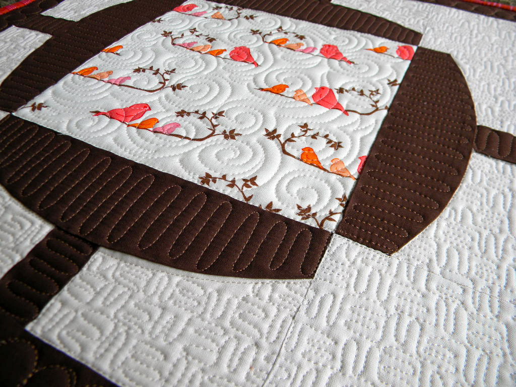The little bird fabric is "MammaBirds" by Valori Wells. It reminded my of my friend and thought it a perfect fit for this block. This is a new design I've wanted to play around with. If you can imagine....many of these blocks put together, that would make for cool quilt.