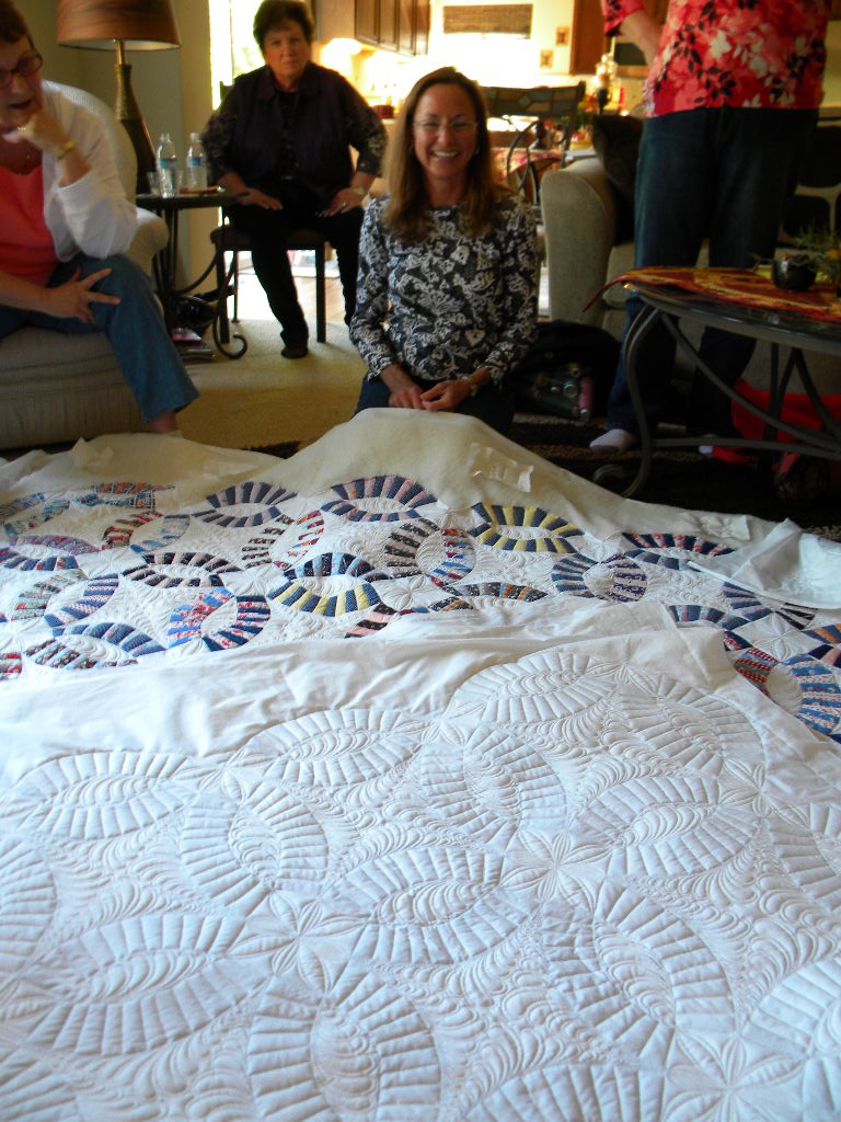 Every 2 months a group of us quilters....longarm or home machines quilters get together and talk business and quilting. It's usually a small group of us and we alternate the use of our homes to hold the meetings. I had such a good time today! We always have a show-n-tell and had some goodies today!