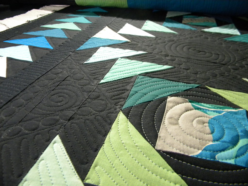 This quilt is Yolanda's. It's a fantastic quilt!! I met her through Flikr....she requested modern quilting which I hardly ever get that request. It's pretty traditional here in Washington (north of Seattle anyway). It's coming along....hoping to finish it today!