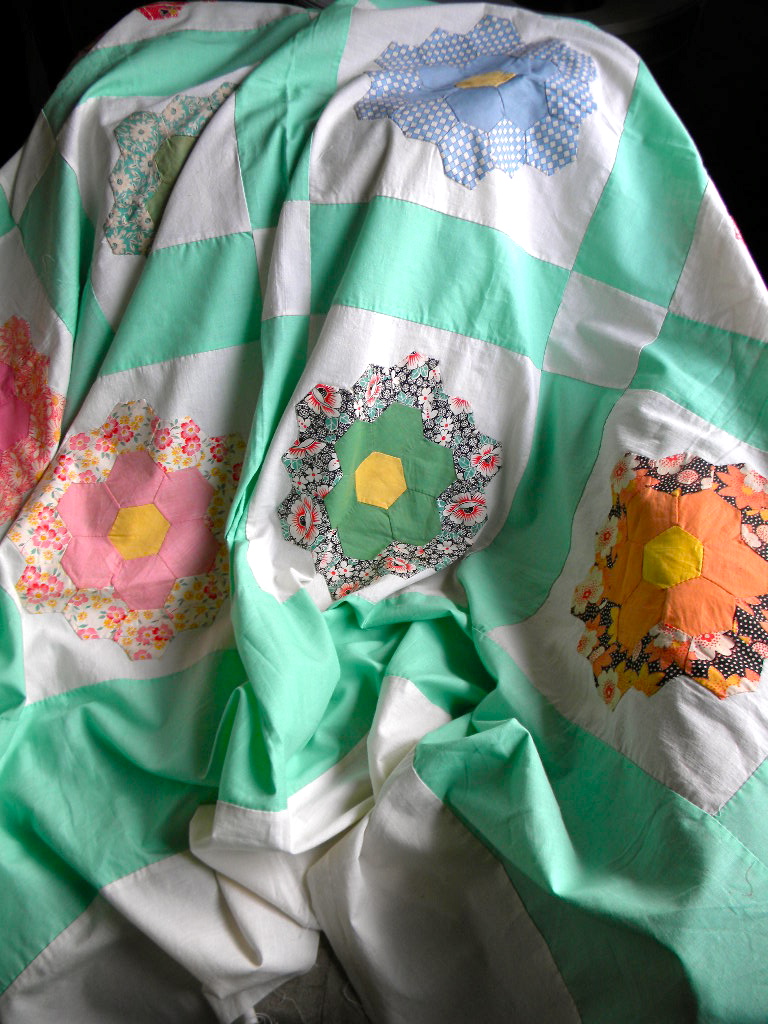 I find it so great how traditional quilting will always be apart of Modern quilting. These great quilts are so modern but all have your traditional hexagon, like the one above that was done up many...many years ago!