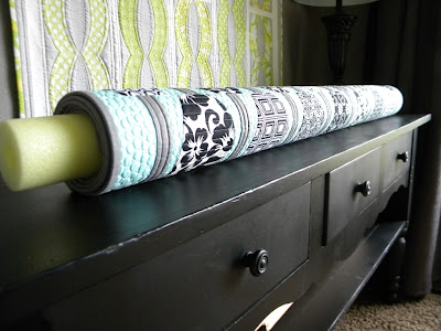 I read this in a Magazine one time and thought it was a wonderful idea! You can pick these swim noodles up at the dollar store and use them to roll your quilts around when they are not in use. That way you prevent fold and crease marks. That is one of my pet peeves!