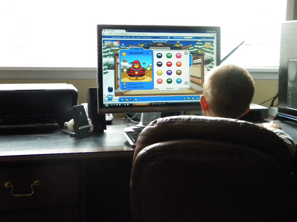 And as I was sitting at my computer downloading some pictures. Toby sat down at the other computer..turned on some Club Penguin and started listening to "Ice Ice Baby" by Vanilla Ice. You can't tell but he was bobbin his head!! It was awesome!