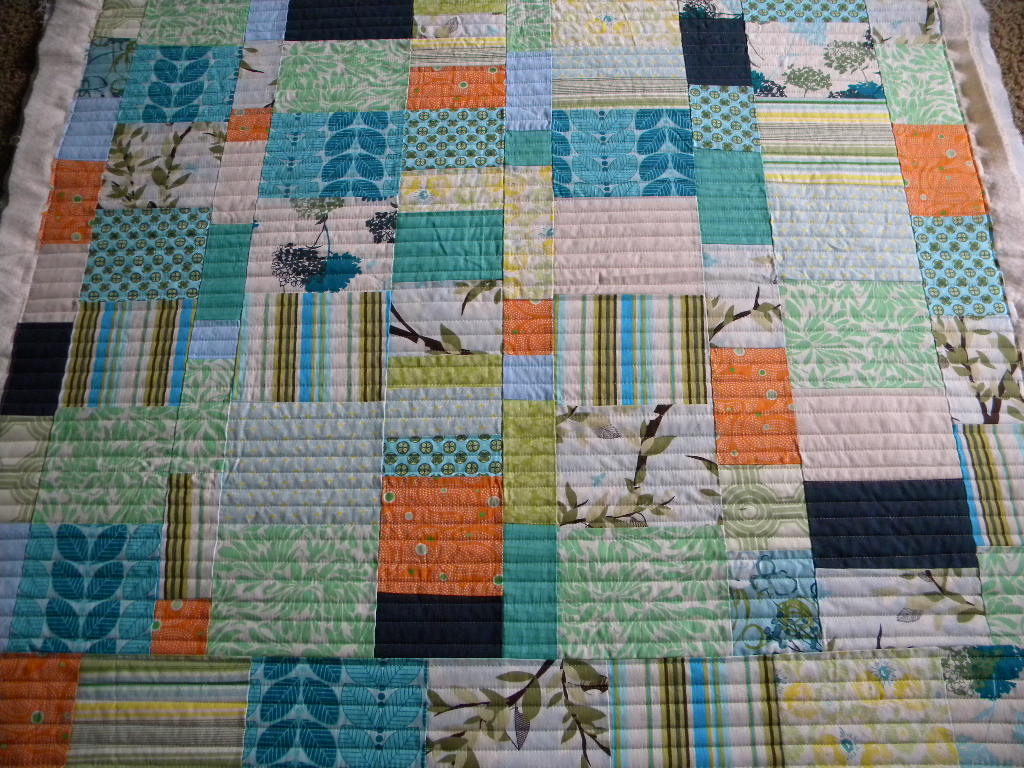 My friend Melissa made this fun scrappy baby quilt and asked me to quilt it for her.