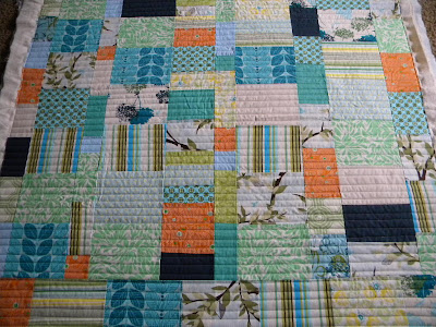 She used her scraps and I think it turned out so cute. She wanted me to quilt straight lines...good choice I might say! She also wanted double batting...warm and natural. I like how that made the quilt feel too.