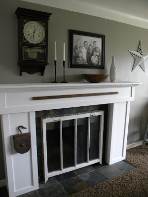I really wanted to find something old to put in front of the fireplace and remembered I had this old window in my carport...for quite some time. I love how it looks! Modern Vintage?