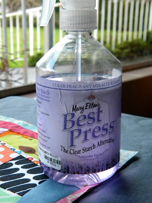 You spray this starch alternative all over the block..pretty good and iron..iron..iron..walah! A flat stiff block.. I squared my blocks to a 10 inch square. It's a fun way to use up all those scraps. I'm definitely going to make more of them! Not sure what I'm going to do with them yet?