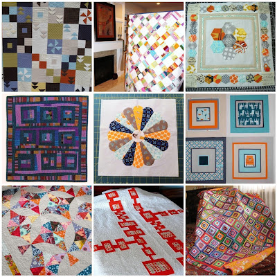 1. City Aviation, 2. Bee Modern Too, 3. Bee Hexed In Block for Brooke - finished, 4. Mini Scrap Quilt, 5. First Dresden plate, 6. put a bird on it., 7. innocent crush kaleidoscope quilt, 8. Atomic Connections, 9. Mish Mash