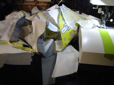 ...so if you don't chain piece or know what it is...it's when you have multiple blocks to piece together and when stitching your two pieces together, rather than snipping your thread after and ironing, you simply leave it alone and sew your next piece together and the next and the next...until you have a whole bunch sewn together in one loooong chain. This saves on thread and time.