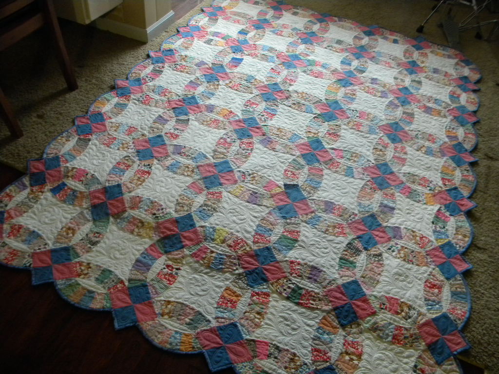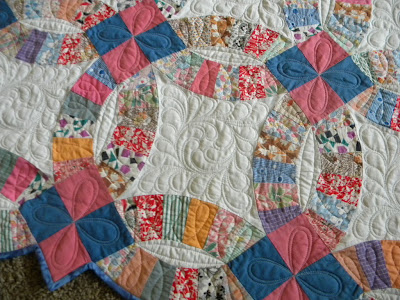 I finished Carolyn's quilt today and I can breath again!! This is a pretty old quilt and was a joy to quilt it. I'm sure whoever pieced would be happy! The binding went fairly well..I had to cut it on the bias and there was no way I was able to attach it while it was on my longarm, so I attached it with my sewing machine and ironed over then to the back and stitched in the ditch on the top. It was tricky doing those inside corners. But am pleased with how it turned out. Carolyn will be here soon to pick it up. Hope everyone has a Merry Christmas!
