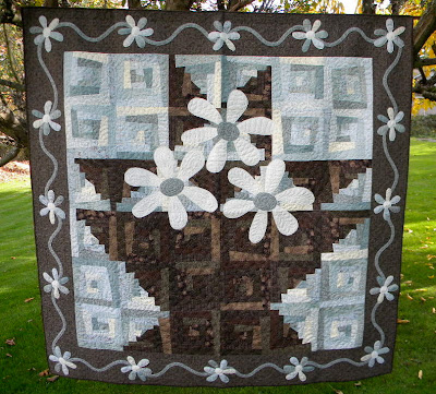 So I waited till the last minute to enter a quilt for the Blogger's Quilt Festival. Better late than never. And thanks to Amy for making this happen! This quilt pattern is called Maisies Daisies by Buggy Barn. And the fabric used is called Iced Mocha, also by Buggy Barn. I made this quilt to potentially teach a class on how to put together buggy barn quilts. I have done a few now and they are really fun and fat quarter friendly. Now I can only imagine how it would look using the fun new retro fabrics....some day.