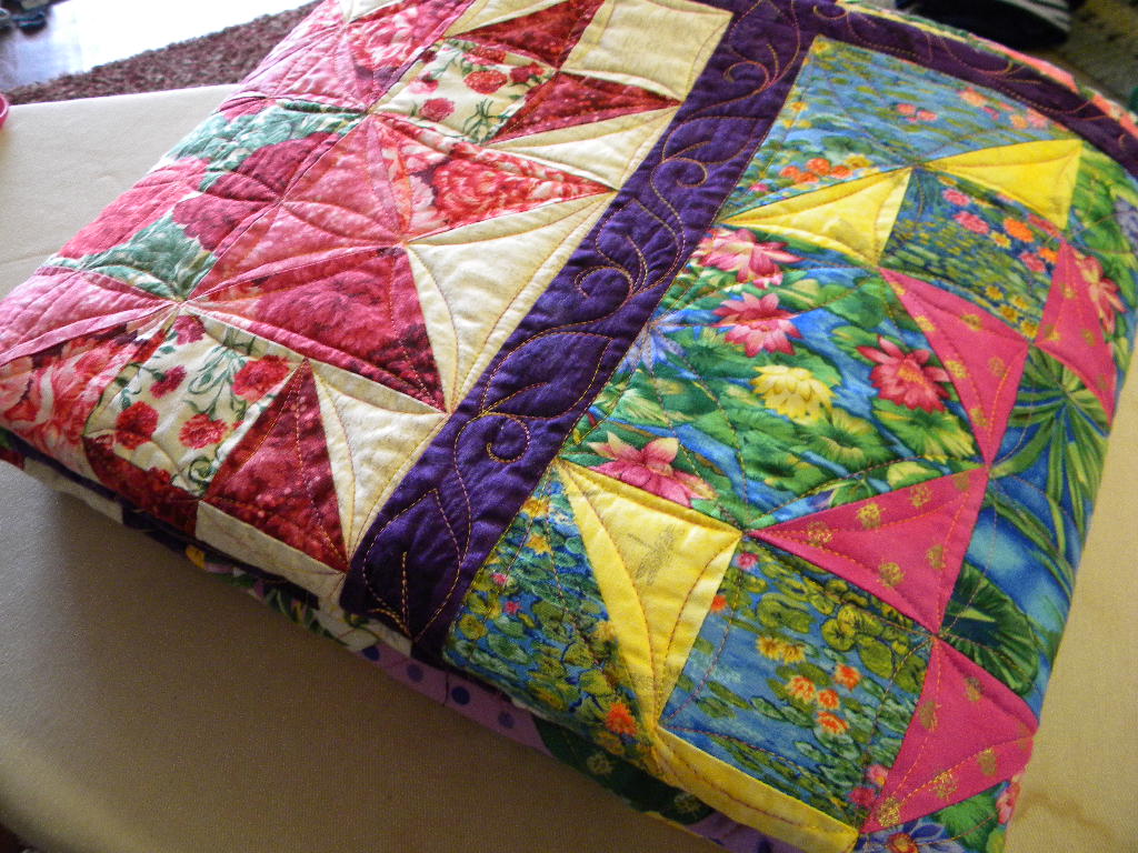 I pieced and quilted this quilt a while back and put it in my old chest. And there it sat all alone needing a home that will use it and snuggle under it! Thank goodness for those quilts you never know what to do with. This one sure came in handy today! Whoo...